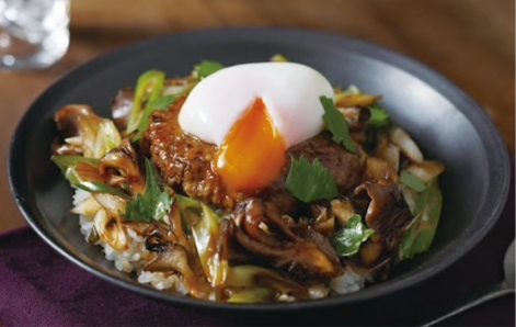 概要:すき焼き風に味付けした、見た目もインパクトのある丼メニューです。とろりとした温泉たまごの黄身が、甘辛だれを纏ったハンバーグによくからみ、ごはんが進む味わいに仕上がっています。