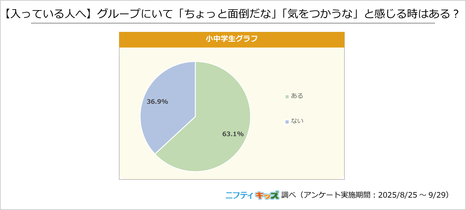 何かしらのグループに入っている小中学生のうち6割以上が「ある」と回答しました。