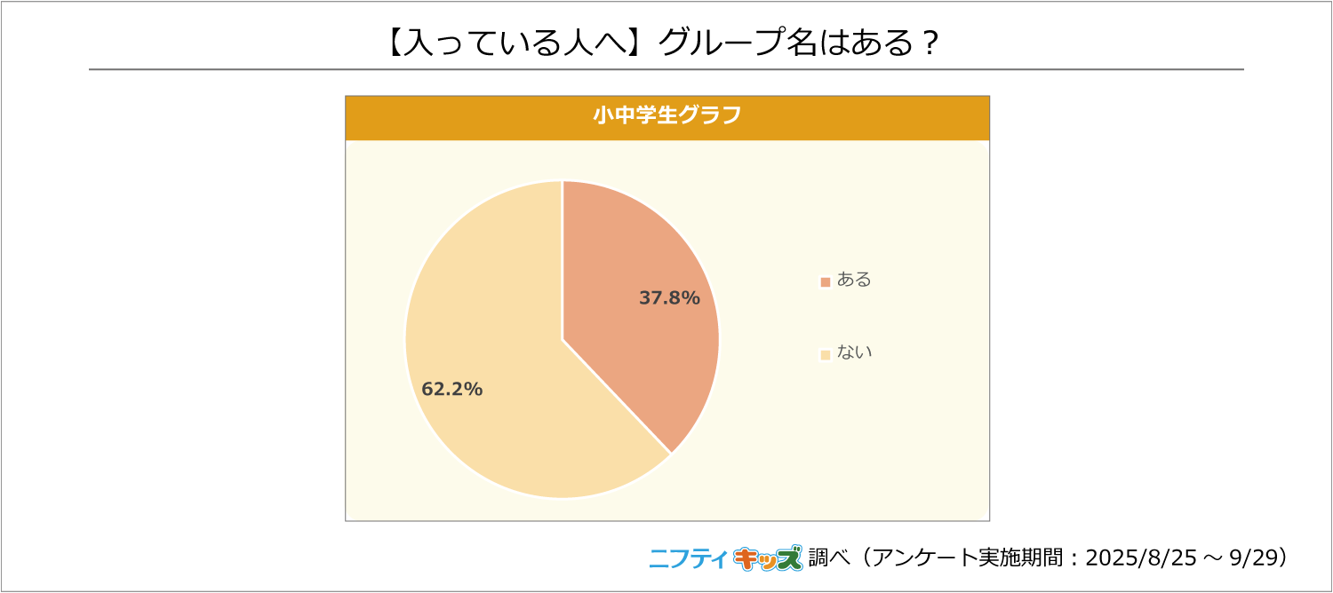 62.2%の子どもたちが「ない」と回答しました。グループはあっても、名前までは決めていないというケースは多いようです。
