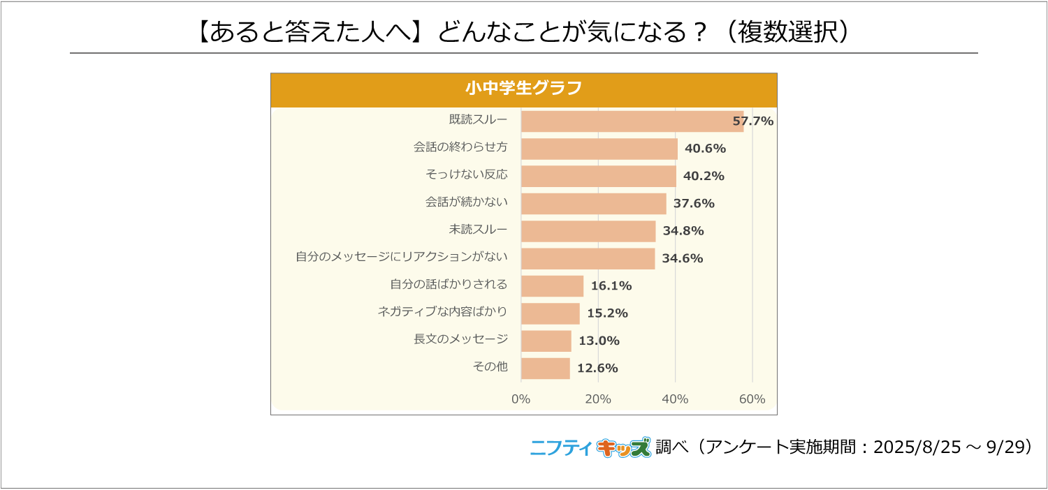 「既読スルー」が最多でした。「会話の終わらせ方」「そっけない反応」「会話が続かない」などの選択肢も上位でした。