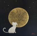 ▲「金満月とねこ」(キャンバスサイズ 20㎝×20 ㎝)
