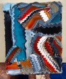 2017年に多摩美術大学絵画学科油画専攻を卒業した瀧澤美希は、2021年アメリカに渡りベビーシッターとして働きながら、資本主義や啓蒙主義、差別を体感、思いを巡らせ、2023年にアーティスト活動を開始しました。渡米前に仏教の思想を学んだことも影響し、世界に対する問題提起の思いを作品に込めるようになりました。ジグザグの筆致は二項対立の矛盾や対立を超えた立場をとる「中道思想」、混色せずに併存するカラフルな色彩は「対話」を意味しています。何色もの色彩が混ざり切ることなく、ギザギザに共存する作品は、様々な問題を抱えながらも、個々が自立し、バランスをとることで存続している、社会そのものを思わせます。