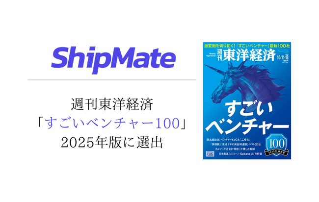 「すごいベンチャー100」は、東洋経済が毎年発表している、成長性や革新性を持つスタートアップ100社を紹介する企画です。ShipMateは、国際発送サービス「ShipMate」および「ShipStation」の開発・展開、訪日観光客を含む幅広いユーザーの利便性向上、今後の事業展開などが取り上げられ、2025年版に掲載されました。記事では、誰もが使える国際発送インフラの整備や、多言語対応、商業施設や空港などへの設置計画についても紹介されています。<すごいベンチャー【77】ShipMate/「誰もが簡単に海外発送」を実現する端末>