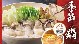 季節の味覚、瀬戸内海産の大粒牡蠣を使用した「大粒牡蠣鍋」など『季節の鍋』メニューを11月11日(火)より販売開始!
