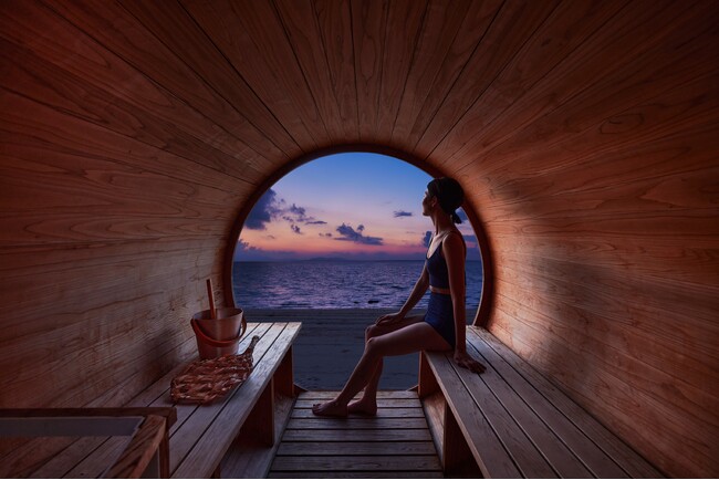 【リゾナーレ小浜島】夕暮れの絶景を望むサウナで、さとうきびが香る熱波に包まれる「さとうきびサウナ」を提供