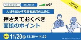 障害者の就労支援を中心にソーシャルビジネスを展開すかる株式会社ゼネラルパートナーズ(本社:東京都千代田区、代表取締役社長:進藤均)は、2025年7月24日に開催し好評をいただいた「障害者雇用の面接スキル」セミナーのアンコール配信を2025年11月20日(木)に実施いたします。