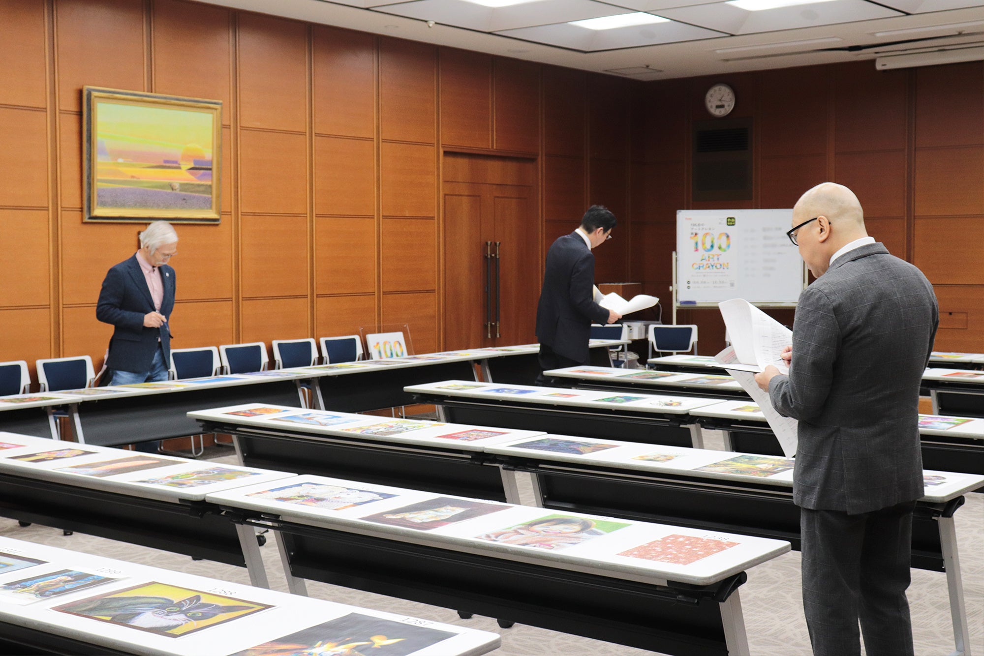 応募いただいた2,300点以上の作品から、柴崎春通氏による審査のもと、展示作品100点を選出し、柴崎春通氏、山田五郎氏、ぺんてる代表取締役社長の石垣淳一による審査のもと、展示作品100点の中から審査員賞10点を選出しました。選出作品は、AWRD特設サイト上で公開しています。