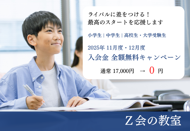 【Z会の教室】11月・12月入会者の方を対象に、入会金無料キャンペーンを実施中