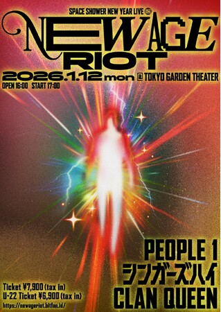 音楽専門チャンネル「スペースシャワーTV」の運営や音楽フェスティバルの企画・運営など、音楽関連事業を多角的に展開する株式会社スペースシャワーネットワーク(本社:東京都渋谷区、代表取締役社長:名取達利)は「SPACE SHOWER NEW YEAR LIVE NEW AGE RIOT」を2026年1月12日(月・祝)に東京ガーデンシアター(東京都江東区)で開催いたします。
