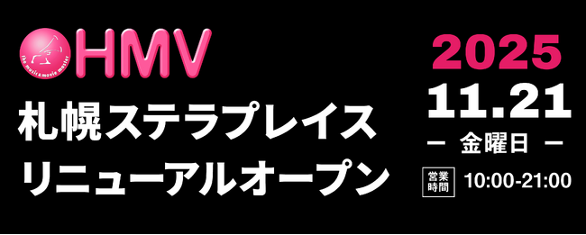 株式会社ローソンエンタテインメント(本社:東京都品川区、代表取締役社長:野口 透)が運営する「HMV札幌ステラプレイス」は、2025年11月21日(金)にリニューアルオープンいたします。