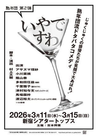 熟年団 第2弾公演『いやですわ』が2026年3月11日(水)~3月15日(日)までの5日間、新宿シアタートップスにて開催されることが決定しました。
