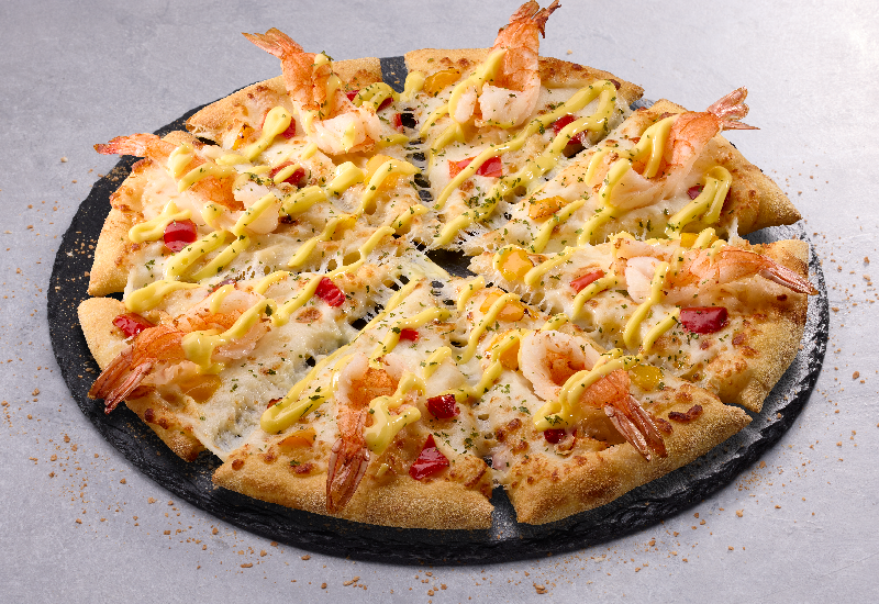 「ダンシングレモンマヨシュリンプ」に使用している大ぶりなサイズの海老は、丁寧にボイルすることで、ぷりっとした食感と海老本来の甘みをしっかりと閉じ込めています。このこだわりの海老を贅沢に、1ピースに丸ごと1尾トッピングすることで、ピザボックスを開けた瞬間に思わず驚くような、存在感のある美しいビジュアルと味わいを両立させました。さらに、甘みを感じられる大きな海老に酸味のあるレモンマヨソースを合わせることで、コクがありながらもすっきりとした味わいに仕立てています。見た目にも華やかで素材にもこだわった、大きな海老が冬の食卓を彩ります。