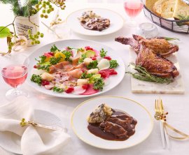 大切な人とゆっくりと過ごしたい。そんなクリスマスの食卓にふさわしい、前菜からメインまでをコース仕立てで楽しめるBOXです。「ロブスターグラタン」や「岩手で育てた絶品鴨のもも肉赤ワイン煮込み」など、テーブル華やぐ味わいを詰め合わせました。