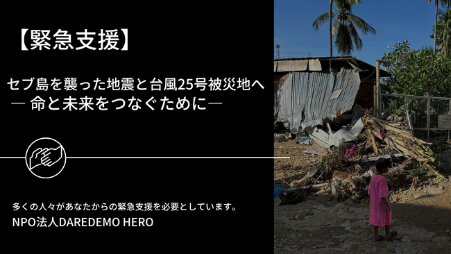 NPO法人DAREDEMO HERO(本部:日本、現地法人:フィリピン・セブ市)は、2025年9月末に発生したマグニチュード6.9の地震に続き、11月上旬に直撃した台風25号による豪雨・洪水被害を受け、セブ島全域での緊急支援活動を拡大しています。