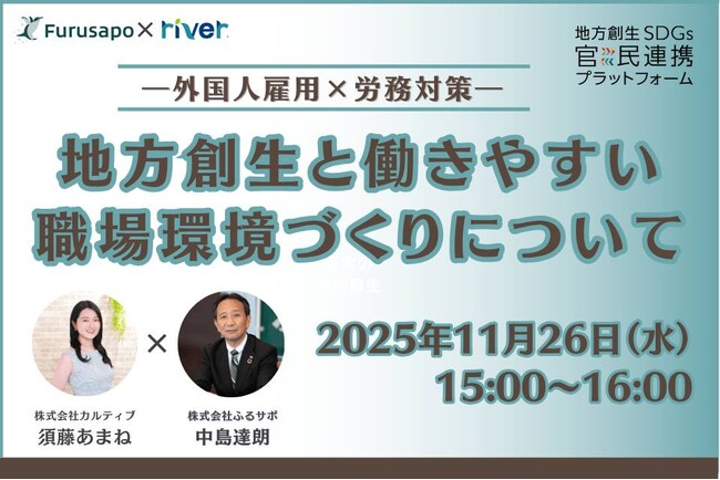 企業版ふるさと納税を活用した地域課題解決プラットフォーム「river(リバー)」を運営する株式会社カルティブ(本社:神奈川県横浜市、代表取締役:池田 清)は「地域課題解決シリーズセミナー」として、2025年11月26日(水)に地方創生と働きやすい職場環境づくりについて~外国人雇用×労務対策~オンラインセミナーを開催します。