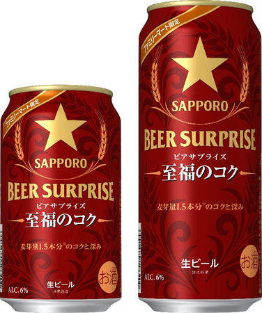 サッポロホールディングス(株)のグループ企業であるサッポロビール株式会社(本社:東京都渋谷区、代表取締役社長:時松浩、以下サッポロビール)と、株式会社ファミリーマート(本社:東京都港区、代表取締役社長:細見研介、以下ファミリーマート)は、「サッポロ ビアサプライズ至福のコク」を全国のファミリーマート酒類取扱店約 15,800店(注1)で11月11日(火)から数量限定で発売します。(注2)