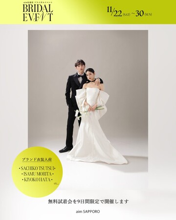 北海道札幌市のウエディングフォトスタジオ「aim札幌店」にて、ブライダルイベントの開催が決定いたしました。