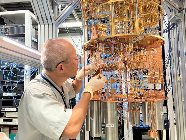 超伝導量子コンピュータ研究での高周波部品の組立調整の様子
