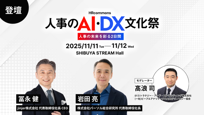 統合型人事システム「ジンジャー」を提供しているjinjer株式会社(本社:東京都新宿区 代表取締役社長CEO:冨永 健)は、2025年11月11日(火)~2025年11月12日(水)に開催される一般社団法人ピープルアナリティクス&HRテクノロジー協会主催のHR commons『人事のAI・DX文化祭』の1セッションに代表取締役社長CEOの冨永が登壇することをお知らせします。