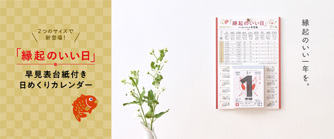 新日本カレンダー株式会社(本社:大阪市東成区、代表取締役社長:宮崎安弘)は、一粒万倍日や天赦日などの「縁起のいい日」を一年分一覧できる『縁起のいい日 台紙付き日めくり』を新発売しました。小サイズと大サイズの2タイプを、全国の文具店や雑貨店、ショッピングサイト等にて販売中です。