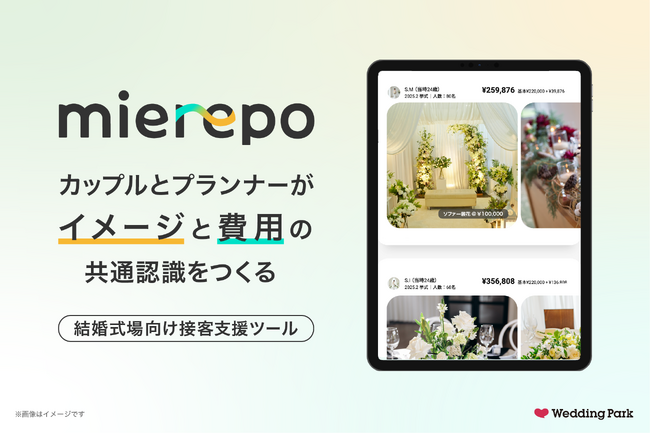 株式会社ウエディングパーク(本社:東京都港区、代表取締役社長:日紫喜 誠吾)は、結婚式の「イメージ」と「費用」をセットでオープンにし、カップルとプランナー双方が抱える「結婚式費用の見えづらさ」を解消する接客支援ツール「mierepo(ミエレポ)」を2026年春より提供開始いたします。