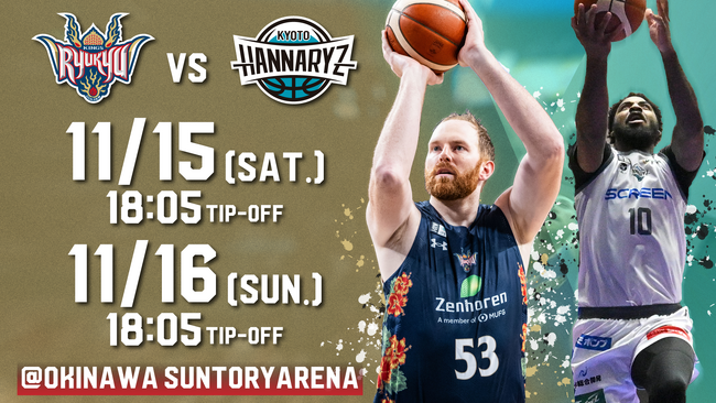 11月最後のホームゲーム、京都ハンナリーズ戦が11月15日(土)、16日(日)に沖縄サントリーアリーナにて開催されます。西地区での順位争いにおいて極めて重要な一戦として、京都ハンナリーズを迎え撃ちます。