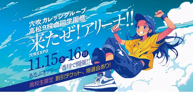 学校法人穴吹学園(香川県高松市錦町:理事長 穴吹忠嗣)が運営する高松市内の専門学校9校は、合同学園祭「穴吹祭」を、2025年11月15日(土)と11月16日(日)の2日間にわたり あなぶきアリーナ香川 および サンポート高松多目的広場にて開催いたします。