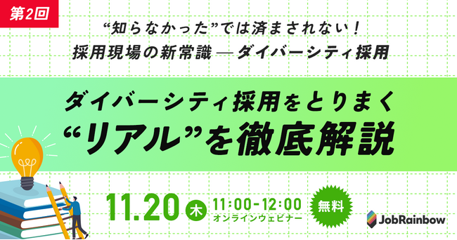 【JobRainbow採用セミナー再開催!】 “知らなかった”では済まされない採用現場の新常識ーダイバーシティ採用【11/20(木)オンライン開催/無料】