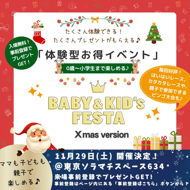 【協賛企業募集中】ママと子どもが笑顔で楽しむ体験型イベント「BABY&KID’s FESTA」東京ソラマチで11月29日(土)開催