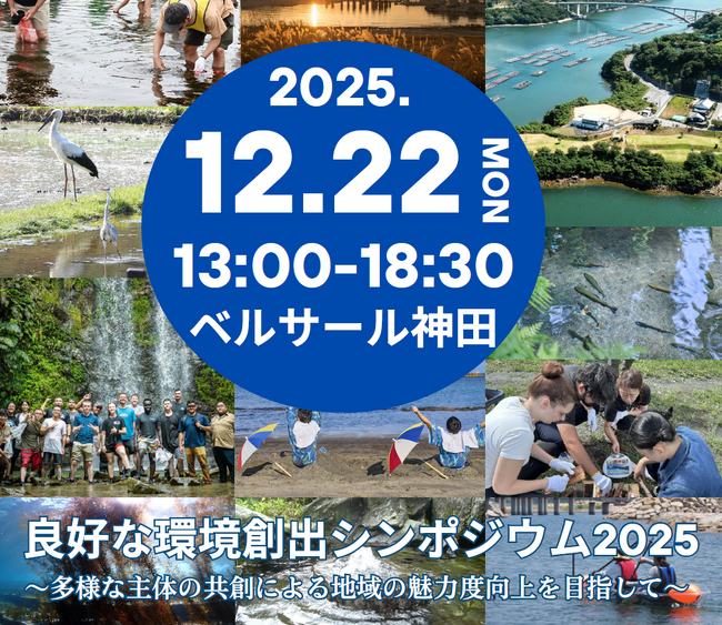 環境省では、良好な環境を活かした地域づくりに向け、環境の創出や活用に取り組んでいる地域・関係者間の連携、モデル事業や水辺の環境活動プラットフォームに関する啓発・推進を目的として、令和7年12月22日(月)に「良好な環境創出シンポジウム2025」を開催します。