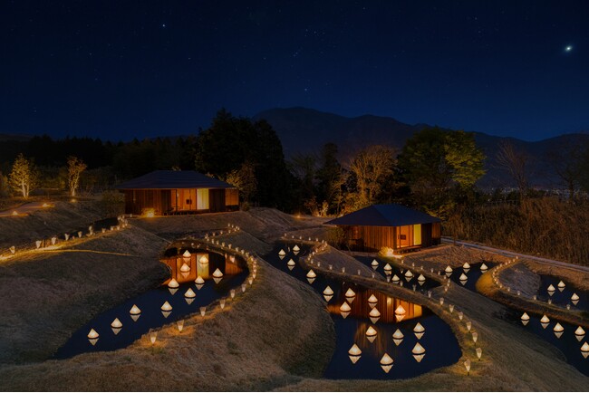 【界 由布院】100本の中津和傘が棚田を灯すライトアップが新登場「棚田冬灯りやつがい」開催