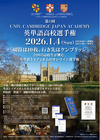 第1回「UNIV. CAMBRIDGE JAPAN ACADEMY 英単語高校選手権」開催決定 -- 成績優秀者にはケンブリッジ研修の機会も