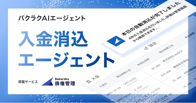 株式会社LayerXは(本社:東京都中央区、代表取締役CEO:福島良典)は「バクラク債権管理」における「バクラクAIエージェント」の新機能として「入金消込エージェント」の提供を開始したことをお知らせします。