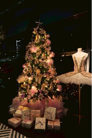 クリスマスツリーの隣には東京バレエ団所蔵の実際のバレエ衣裳をディスプレイしており、バレエの洗練された優美な魅力が空間に満ち、その世界観をお楽しみいただける空間となっています。