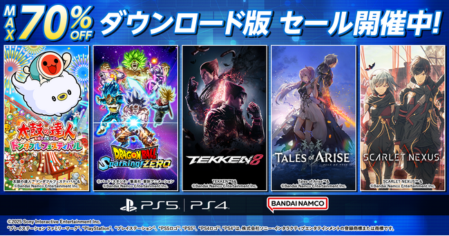 株式会社バンダイナムコエンターテインメントは、PlayStation(R)Storeにて、人気5タイトルを対象としたお得なダウンロード版セールの開催をお知らせいたします。ぜひご確認ください!
