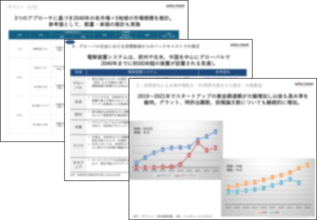 そんな中、本レポートは、アスタミューゼが保有する特許・論文・投資・助成金(グラント)などの独自データベースも活用し、2040年までの中長期的な需要構造・技術シナリオを明らかにした上で緻密な市場推計を行うことで、産業界における技術開発や投資戦略の立案を支援することを目的としています。