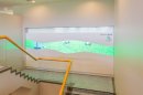 左から)きれいになった女性パウダーコーナー、シャンプーバーを新設した女性浴室、8月に新設した LED ビジョン