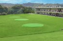 県内最大級の300ヤード・天然芝のフィールド。奥側に和木GCの