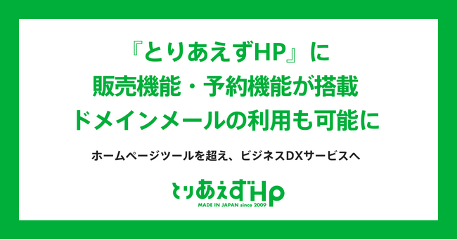 「とりあえずHP」に販売機能・予約機能が搭載。ドメインメールの利用も可能に