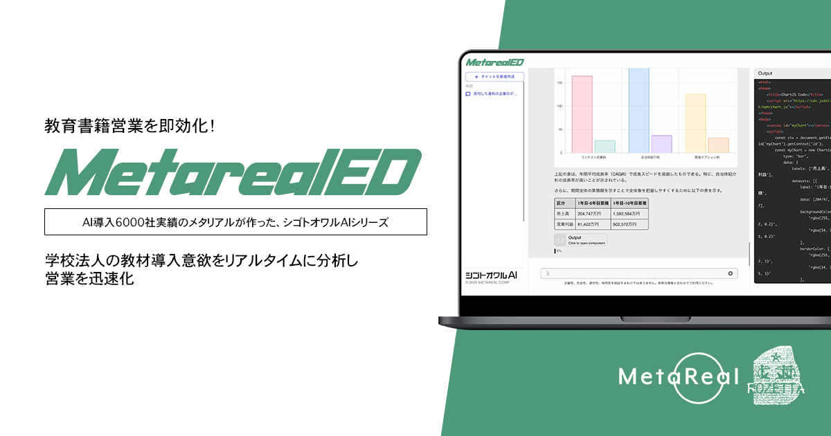 【メタリアル・グループ】学校法人の教材導入意欲分析レポートAIエージェント「Metareal エデュブックス(Metareal ED)」11/12提供開始
