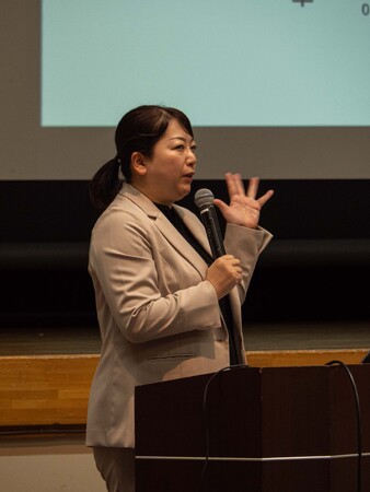 第一部では、東京都健康長寿医療センターの本川佳子氏が「フレイル予防を基軸とした栄養と口腔の関係」をテーマに講演しました。本川氏は、フレイル(虚弱)を防ぐためには、運動と栄養・口腔の健康について一体で取り組むことが重要であり、栄養に関してはたんぱく質を十分に摂取することに加え、バランスのよい栄養摂取も重要であること、それを簡単に実現するためには、たくさんの食品を摂ることを意識することがポイントであると紹介しました。また様々な食品を摂取するには咀嚼機能をはじめとしたお口の機能が重要であり、お口の機能の些細な衰えである「オーラルフレイル」に早く気づき対策することが大切であるとの解説がありました。