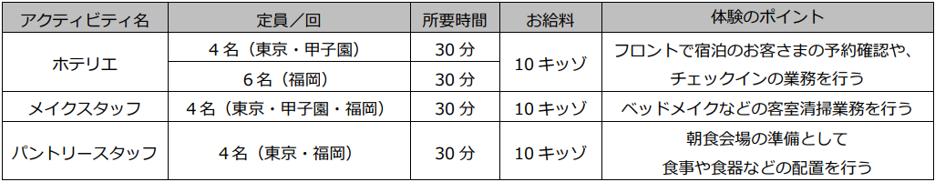 国内キッザニア初!東横インの「ホテル」パビリオンが3施設(東京・甲子園・福岡)で3日連続オープン