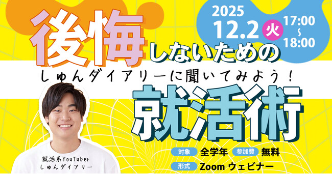 【イベント名】「しゅんダイアリーに聞いてみよう!後悔しないための就活術」【開催日時】2025年12月2日(火)17:00~18:00