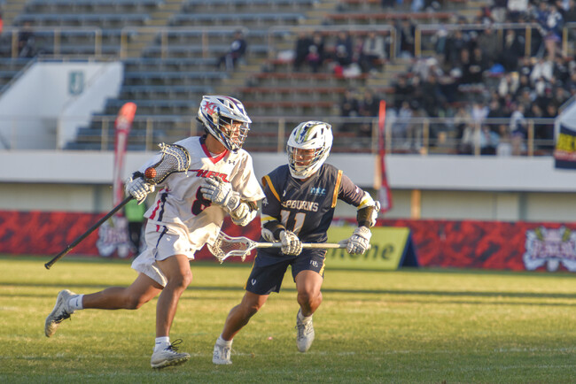 ラクロスは先端にネットがついたスティック(クロス)と呼ばれる道具を使ってボールを運び、相手ゴールに入れて得点を競うフィールドスポーツです。両チーム10人で、15分×4クォーターで行われ、男女でルールは若干異なりますが、パス・キャッチ・シュートと、ボールスポーツの醍醐味が全て組み込まれています。