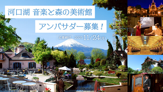 株式会社ファーストイノベーション(本社:東京都中央区、代表取締役社長:木ノ根雄志、以下ファーストイノベーション)は、山梨県・富士河口湖町に位置する「河口湖 音楽と森の美術館」(所在地:山梨県南都留郡富士河口湖町河口3077-20、館長:名和真希)と連携し、同施設の魅力をSNSやブログ等で発信するアンバサダー募集を開始いたします。