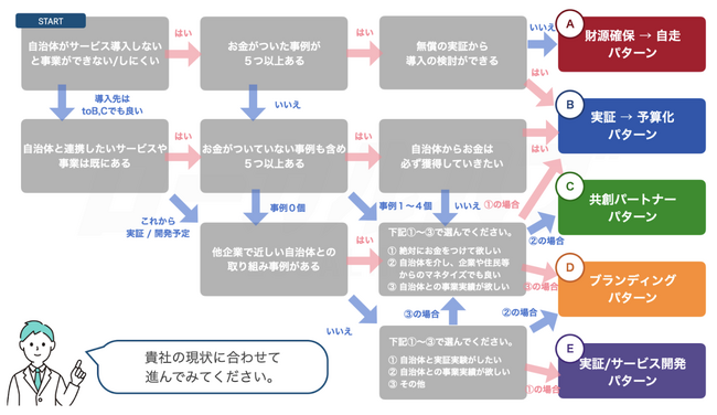 自治体職員が自ら課題を流れに沿って入力するだけで、企業に伝わる形の素案ができるようになります。企業側は、流れに沿って記入するだけで