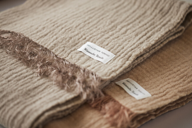 本プロジェクトは、装飾後に廃棄されてしまう桜を活かし、日本の職人の手仕事によって新たな価値を与えるサステナブルな取り組みです。2025年3月に発売した扇子に続き、山梨県富士吉田市のテキスタイルブランド Watanabe Textile と再度協業し、冬の装いに彩りを添える上質なマフラーが完成しました。