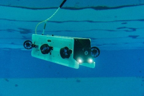 1人で持ち運べるポータブル性(重量15kg)、最大3ノットの高速航行、水中での二次元/三次元の先進計測技術 の3つを持つ国産水中ドローンです。災害時の要救助者の水中探索や崩落状況の確認、河川・港湾・水門等の 水中インフラ構造物の点検に活用されています。