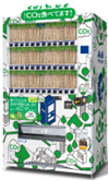 飲み物を販売するだけでなく、内部に組み込まれた特殊な吸収材によって、大気中のCO2を回収するという機能を備えた、国内唯一の自動販売機です。吸収材は、加工や輸送に伴うCO2排出量を上回るCO2吸収効果を持ち、1台当たりの年間CO2吸収量は、稼働電力由来のCO2排出量の最大20%、スギ(林齢56-60年)に置き換えると約20本分に相当します。2023年6月に展開を開始し、2025年9月末時点で全国に約3,700台を設置しています。