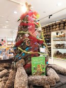 ツリーは、稲藁で制作したオオサンショウウオやカエルなどのオーナメントで装飾しました。さらに、木津川市・相楽神社の「餅花祭」の装飾「餅花」や、南山城村・田山花踊りの伝統的な装飾、南丹市・多治神社の「田原の御田」の衣装など、京都府内で豊作を願う祭事をモチーフにした装飾で彩りました。